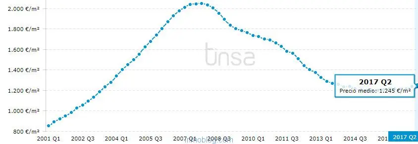 Tendencia del precio de la vivienda. Fuente: Tinsa.