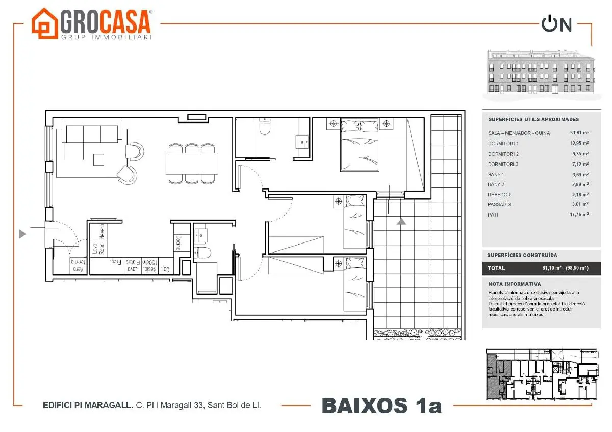 El grupo GROINVERSIA te presenta Edifici Pi i Margall, una nueva oportunidad de inversión en Sant Boi de Llobregat (Barcelona). Se trata de un edficio de obra nueva en el centro de la ciudad, muy cerca del ayuntamiento así como de la estación de Ferrocarriles de la  Generalitat en la ciudad.